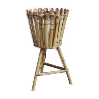 Plant pot, plant holder made of bamboo and rattan splint. In good general condition with some traces of use over time on the wood giving it its period patina. A playful decorative object in keeping with the current trend of natural materials in our interiors. In good condition, a bamboo stem detached without impacting the stability or visual appearance of the object. Careful and fast shipping.
