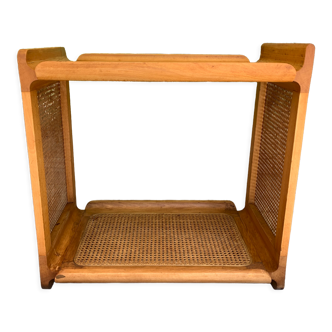 This stylish coffee table from the 1970s, likely originating from Belgium or the Netherlands, combines natural materials with a light, airy design. Featuring two levels and a beautifully polished travertine top, it offers both visual interest and practical use. The rattan structure creates an open, transparent look, allowing light to pass through and enhancing its versatility. A perfect balance between solidity and elegance. An attractive and timeless piece that fits effortlessly into a wide range of interiors. Measurements: Width: 77cm. Depth: 77cm. Height: 47cm.