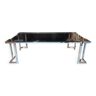 Tubular steel coffee table. Smoky glass top, blue tinted. Design 70, italy.