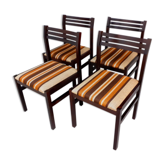 Four chairs of the house regain. Of blackened wooden "sled" shape. And seats in unbleached fabrics (original) 80s/90s. Backrest height: 78 cm. Width: 45 cm. Seat dimensions: 44 X 40 cm. The whole is in very good condition. Stable and solid. They have shallow stripes. Tissues are not torn or cut.