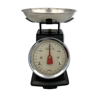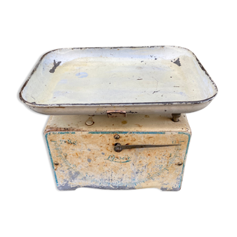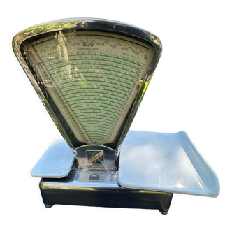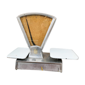 Vintage grocery scale 50's. In working order. Some traces of wear. Height: 59 cm. Width: 28 cm. Depth: 50 cm. Free shipping on paris and close.