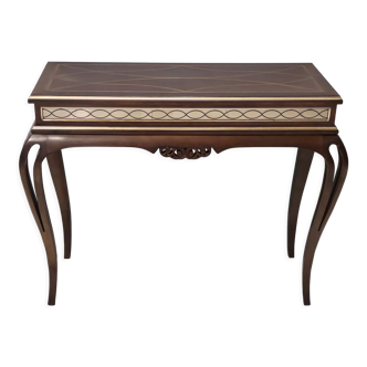 Napoleon III Jardinière in Boulle Marquetry. Superb Napoleon III jardinière in ebonized wood, decorated with Boulle marquetry combining brass and mother-of-pearl. Its elegant curved base highlights the finesse of the cabinetmaking of the second half of the 19th century. Gilt brass ornamentation, finely chiseled sabots and frames. French work, circa 1880. Very good overall condition. Dimensions: Height: 78 cm. Width: 56 cm. Depth: 35 cm. A very elegant decorative piece, representative of the refined taste of the Napoleon III era.