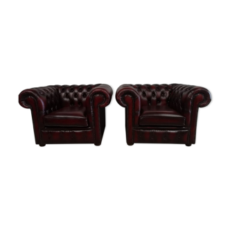Chesterfield sofa 2 seats in brown leather, good general condition and firm seat. Seat height 40 cm seat width 85 cm, seat depth 52 cm. Total height 114 cm, width 145 cm, depth 52 cm.