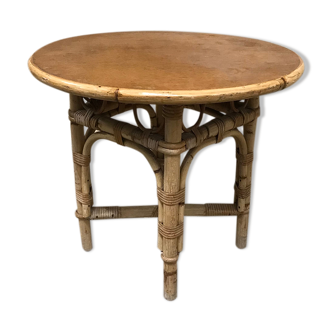 Meet a piece of authenticity: the sun rattan coffee table. A vibrant homage to the 1950s and inspired by the ingenious work of janine abraham, this table is sure to bring back the charm of the era in your living space. With its dimensions of 78 cm wide, 50 cm high and 78 cm deep, it offers an ideal space to comfortably gather your guests around a coffee. The rattan top, although slightly marked by time, speaks through its small imperfections, adding an extra layer of authenticity and character. Damage, far from being defects, plays a crucial role in bringing soul and a nostalgic aesthetic to the entire piece. It's true, two rattan rays are missing from the outside. But isn't this a discreet testimony to the adventures and lives she was able to experience over the years These signs of wear, subtle but present, invite us to explore the history of this piece of furniture, while allowing us to write our own. Add that vintage touch to your space, with a table that doesn't just furnish, but that tells a story, that lives, and that, despite - or thanks to - its imperfections, remains elegant and charming. Let yourself be seduced by its soft and assertive presence, and allow this rattan coffee table to become the new sun around which your moments of sharing and relaxation will revolve.