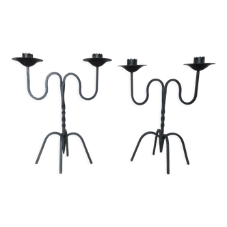 A beautiful brutalist tree candlestick from the 1970s. Hand-forged from blackened wrought iron and wonderfully shaped like a tree, with a base designed to resemble roots, a trunk, and artistically curved and organically formed branches. A decorative and sturdy piece of craftsmanship with an artistic presence, 100% handmade. Suitable for indoor and outdoor use, in very good original condition.