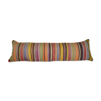 These beautiful 12"x 40" pillow covers were made from an authentic vintage turkish hand-woven rug in the 1960s. Bright wool colors adorn the front of the pillow and the cotton back has a hidden zipper. Makes a wonderful addition to any sofa, chair or bed. Handmade in turkey. The measurements are about 12 "x 40" inches / 30 X 100 cm. The insert is not included. Maintenance: dry cleaning only! I wouldn't recommend washing it in a washing machine. Sku: ak821.