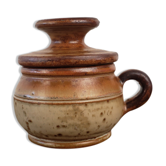 Vintage pot with lid. Original form. Perfect condition. Brown color. Small shade of green on the top edge. Dimensions: diameter 12 cm, height 17 cm.
