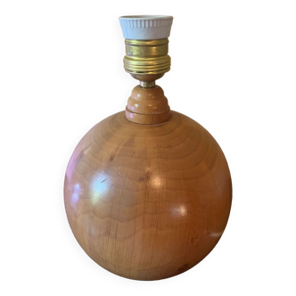 Beautiful spherical lamp in solid beech with visible grain. Large in size, it is heavy and stable, measuring 20x20 cm in diameter, and 24 cm in height including the socket. In good condition, with 1980s wiring using white wire and a recently installed transparent switch (requires a large screw-in bulb).