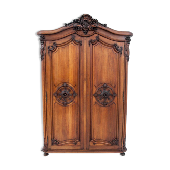 Pine wardrobe 20th century. Charming small mountain wardrobe in pine with a gendarme hat top. This piece of furniture was made in the late 20th century and features a hanging space. Please note that this item is not dismountable for delivery. DIMENSIONS: 1.50M WIDTH, 0.61M DEPTH AND 2.02M HEIGHT DELIVERY ON QUOTATION.