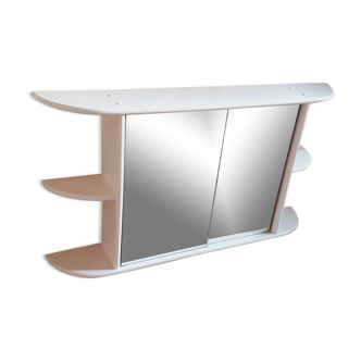 Counter cash register of store, wood and glass mirror of slightly brown color, top: 104 cm, long and width: 171 cm by 55 cm, 2 levels of shelves on the top, 2 storage doors with adjustable shelves, 1 cash drawer with lock and keys, very good condition.