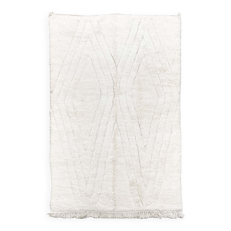 The beni ouarain carpet originated from the mountainous regions of the middle atlas in morocco by the aït ouaraïn tribes. The moroccan beni ouarain wool rug is woven in a soft and thick natural wool. It is now very popular for the sleek and minimalist style it offers and for its aesthetics and the comfort it provides. It is most famous for the quality of its wool and the history of its tribe. Hand-woven, they are distinguished by their large sizes, geometric patterns and minimalist style.