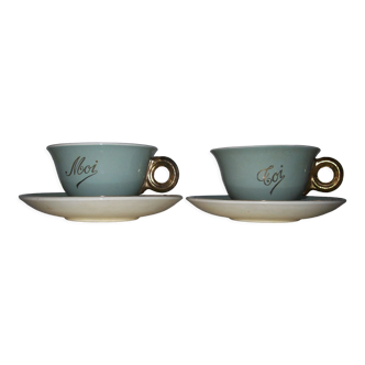 Old blue cup moi villeroy and boch made in france. The gold is a little erased. Size: 7 cm high and 11 cm wide at the top of the cup. Very neat shipment with bubble wrap. Feel free to look at all my ads.