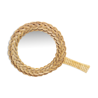 Back to the 60s with this delightful mirror! A wall model of circular shape in braided wicker with wood bottom, round ice... A useful & decorative piece that will easily integrate into any interior! Good condition. D: 45 / 35 cm d: 4cm.