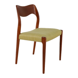 Wooden chair with curved back. New fabric. Dimensions: 79x49x52 cm.