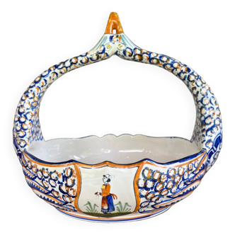 Selling very beautiful henriot de quimper earthenware fruit basket, "swan heads" handle, perfect condition. Gorgeous colors!.