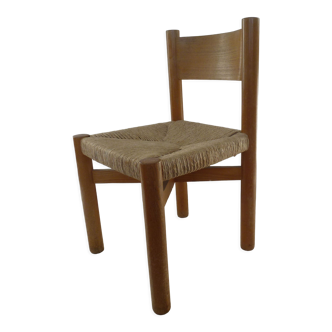 Stool woven straw raw wood