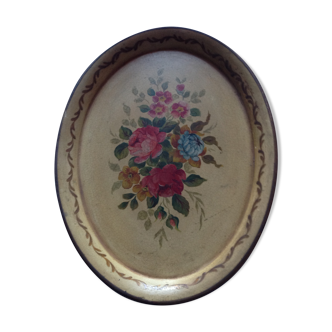 Antique Wabi-Sabi style tray with a blackberry, blueberry, and strawberry design. Beautifully patinated, it is in good condition with some signs of use. Dimensions: 31 cm X 45 cm. Height: 3 cm. Fast and careful shipping.