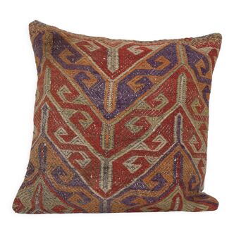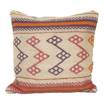 Berber wool cushion handmade in morocco from an old kilim carpet steeped in history. Ideal in a living room or bedroom to bring a touch of authenticity. This cushion is characterized by its pompom and stunning zigzag patterns. Style: kilim cushion / vintage moroccan cushion. Condition of the cushion: very good condition. Composition: sheep's wool. Natural tincture. Homemade. Berber cushion cover delivered without padding. Several similar moroccan cushions available (see the products in my shop).