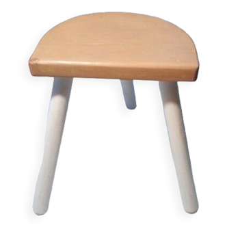 Solid wood tripod stool. It has been painted and given a patina. It is gray/mauve. Ideal as an end table or plant stand. Diameter 26 cm, height 38 cm. The legs are removable. Shipping is therefore possible. Via Colissimo or Mondial Relay.