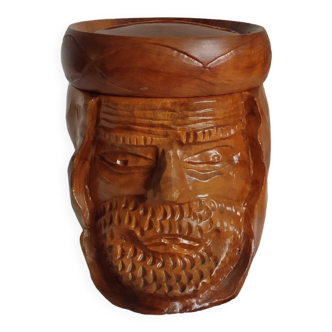 Wooden bookends by marc platevoet, a sculptor from lille. He drew inspiration from the traditions of his region to create these two heads (the giants of flanders). The artist is present in galleries and international fairs with his wood and bronze works. Signed and dated 10-12-1971. Height 15.2 cm, width 16 cm, depth 7.3 cm, and weight 1680 g.