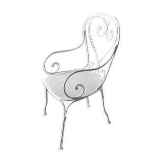 Wrought iron garden chair. 40 cms in diameter. 65 cms wide. 41 cms high at the seat. 89 cms high on the back.
