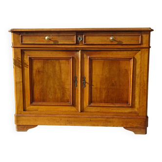 This very beautiful French patinated chest of drawers from the mid-1800s has a beautiful deep color and an amazing appearance. This chest of drawers has two doors and a drawer and a sleek design. Size: Height: 94cm Width : 120 cm Depth : 62 cm