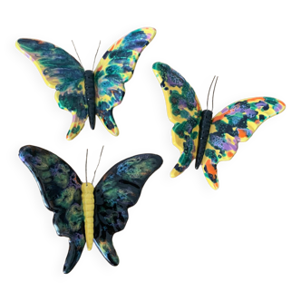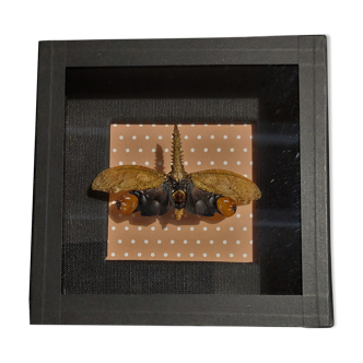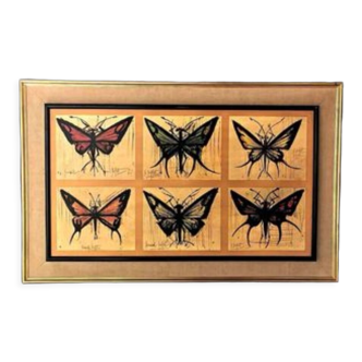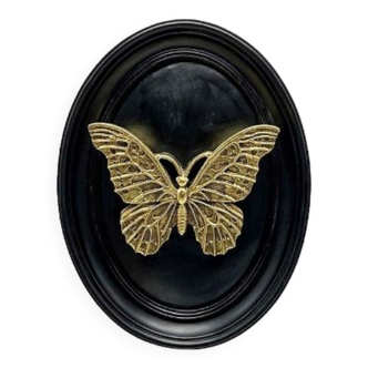 Original signed butterfly watercolor in its old oval black wooden frame with old glass.
