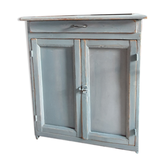 Former parisian buffet revisited in almond green. 1 door, 1 drawer, the handles are original, the patina is protected by a wax.