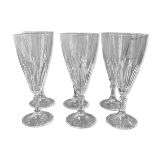 Series of seven glasses, liqueur, stem, crystal, antique. Old service in good condition. Period: early twentieth century. Height: 9.2 cm. Diameter: 4.4 cm.