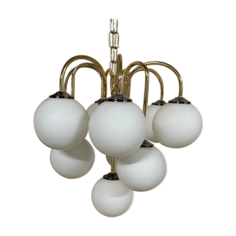 Nickel-plated 3-flamming art deco chandelier. 3x40w, e25-e27 bulbs. Nickel with minor age patina - polished. Rewired. Us wiring compatible.