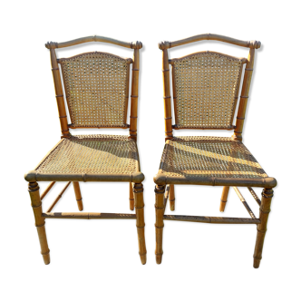 Pair of bamboo-style wooden canned chairs