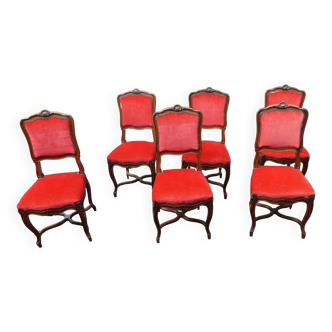 Suite de 6 chaises Napoléon III en noyer et tissu