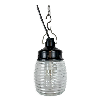 Polish porcelain lamp with a ball-shaped glass shade, total height with black braided cable: 105 cm. Maximum power of the e27 bulb: 100w.