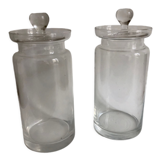 Glass apothecary jar or pot with lid. Excellent condition. Superb as a decoration with other vases, dried flowers... Base width 8 cm and total height 17 cm.