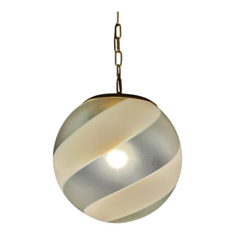 Superb designer chandelier from the 70s (Gangkofner?) in colored white and frosted glass in an ovoid shape, covered with a tapered hard plastic cover (only the ceiling cover is not original, I added it because it does not 'didn't have one), diameter approximately 33cm. Very beautiful piece. Careful shipping.
