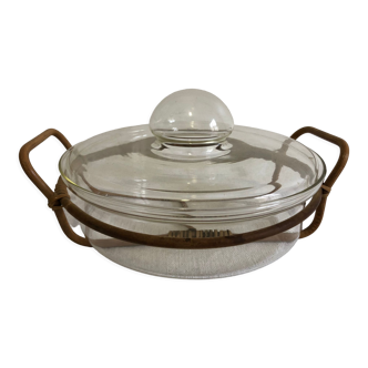 Old Bohemian crystal sweet jar. Bluish transparency and white curved decoration. Very good condition, never used, just small marks of rubbing underneath (see photos). Height: 10 cm. Diameter: 9.5 cm. Width: 15 cm. Weight: 300 g.