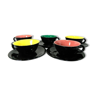 Very nice service of 3 vintage cups with undercut. Made in italy. Dimensions: cup diameter 9, saucer diameter 14.5. H 6.5.