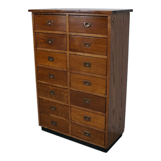 Oak workshop furniture, known as a Notary desk, with 27 compartments with flap doors. Excellent condition.