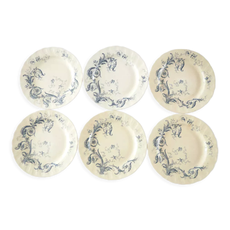 8 flat plates colored with country and floral motif of lunéville, blueberry decoration. They are in good condition, one of them has a small shine, not visible from the top. Another is monochrome, see photos for details.