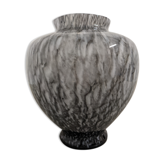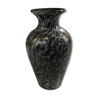 Glass vase by La Rochère, handcrafted in France. Modern and elegant, grey and black speckled glass vase. Height 20cm. Max diameter 12.5cm. Slight scratches may appear depending on the lighting.