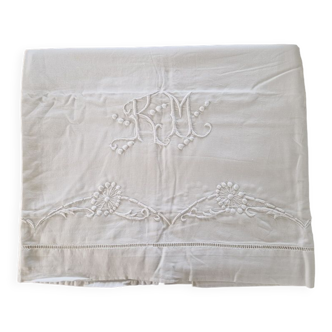 Large antique monogrammed flat sheet