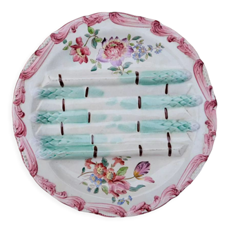 2 longchamp slip asparagus plates marking on the back 1316 relief decoration color green and pink diameter 26.50 cm height 2.50 cm some scratches (see photo) c3.