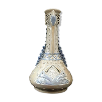 Antique green glazed ceramic vase with relief decoration – Europe