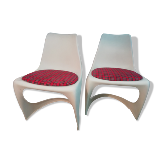 Casala chair in white, orange fabric cake. Chair created in 1975 by alexander begge for the german brand casala. Very comfortable plastic structure. Beautiful example of "space age" design.