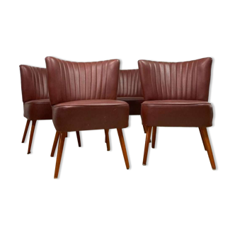 Vintage design: Original mid-century cocktail chairs and one sofa with leatherette. The set is in very good original condition, the original vinyl has minimal signs of wear. Detailed condition. Good — this vintage item remains fully functional, but it shows sign of age through scuffs, dings, faded finishes, minimal upholstery defects, or visible repairs.