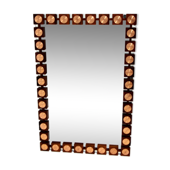 Wall-mounted locker room, 70's, mirror 85x28, vintage orange mirrors and decorations diameter 15cm, ivory wrought iron structure, to be fixed to the wall, umbrella holder and metal hooks, patina and traces of time.
