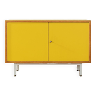 Nice antique low furniture, circa 1960. On 4 wheels, it allows to be moved easily. Made of wood, it has been repainted in 2 beautiful gray shades of farrow & ball (2 layers of "pigeon" on the outside and "blue gray" on the inside + 1 undercover) with its 2 doors that close with a magnet, it has its 2 original handles in wood and gilded brass. Pretty original hinges. It comes from the old furniture of the national archives. It will be perfect as a small tv cabinet for example or in a small space as a storage unit. It has kept some traces of time but it is impeccable and perfectly functional. Height: 35 cm. Width: 70 cm. Depth: 42 cm.