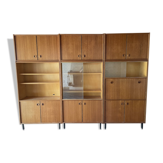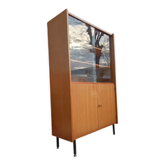 50s/60s display cabinet bookcase. Adjustable metal legs. Height-adjustable shelves. Two-door cupboard with shelf at the bottom. Very good condition. Height 165.5cm. Width 92cm. Depth 35cm.