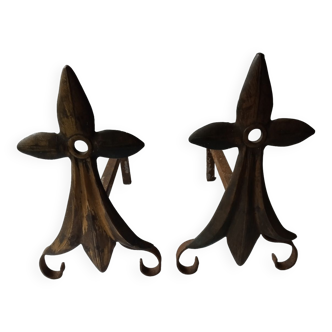 Set of 2 antique bronze / brass candle holders. Forms of flowers and leaves, good condition. Diameter: 13 cm. Height: 5.5 cm. Weight: 500g.