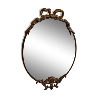 Oval mirror from the 25/30s, mahogany surround decorated on each side with golden roses. The beveled mirror is in perfect condition. The whole thing is original.'.